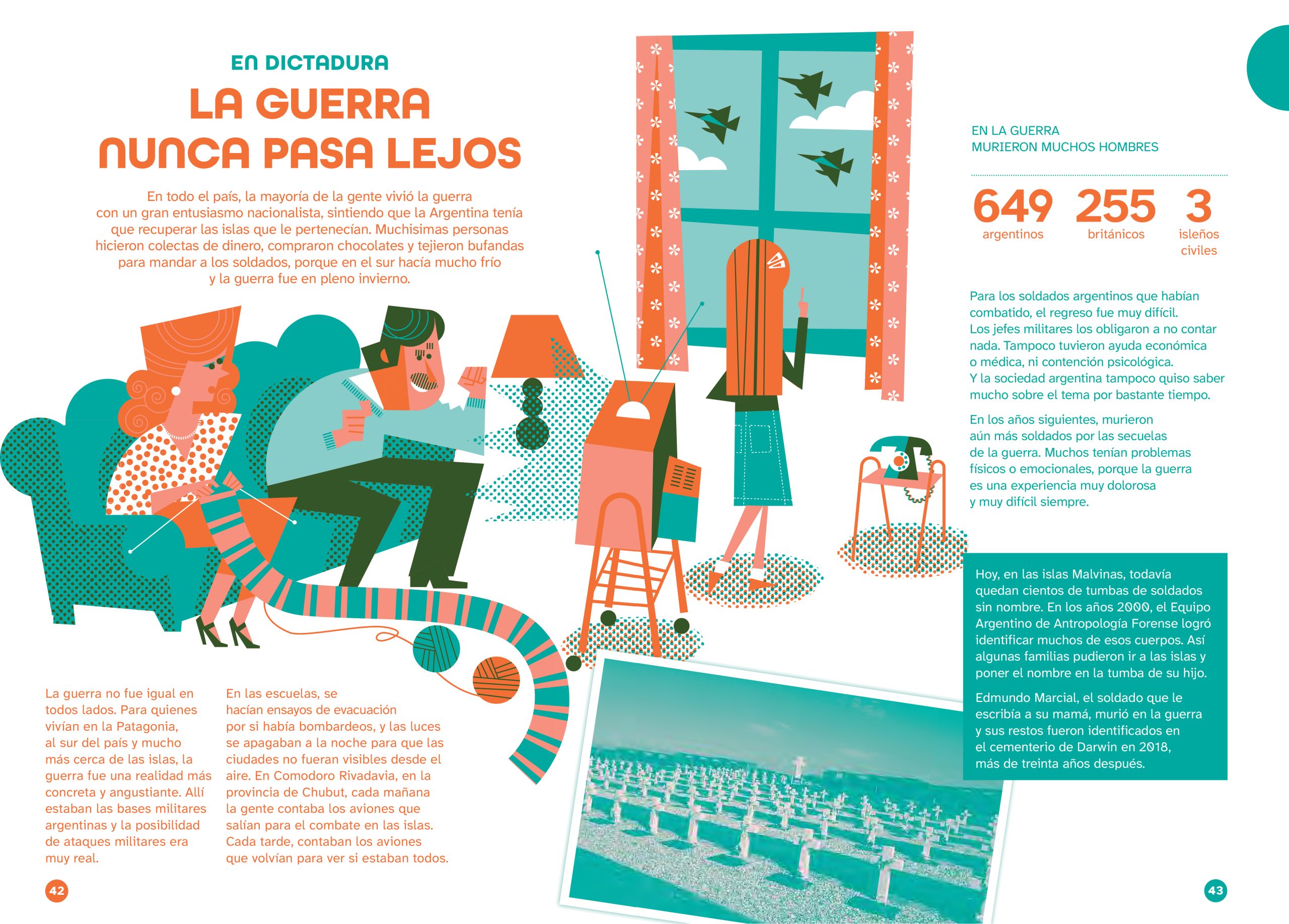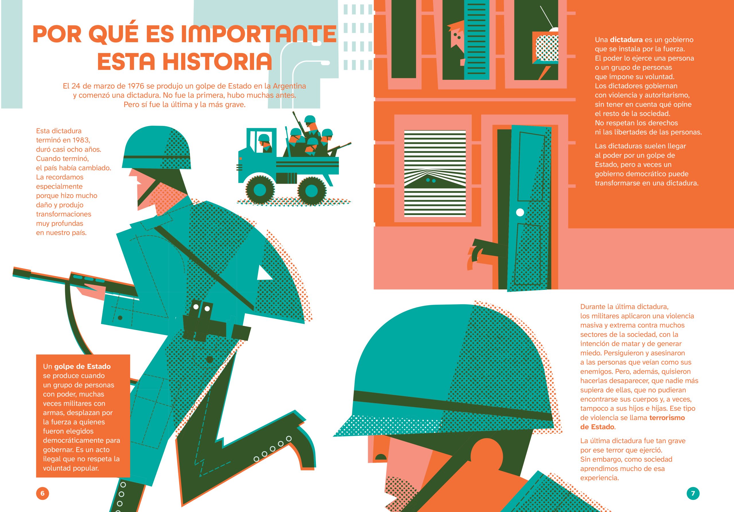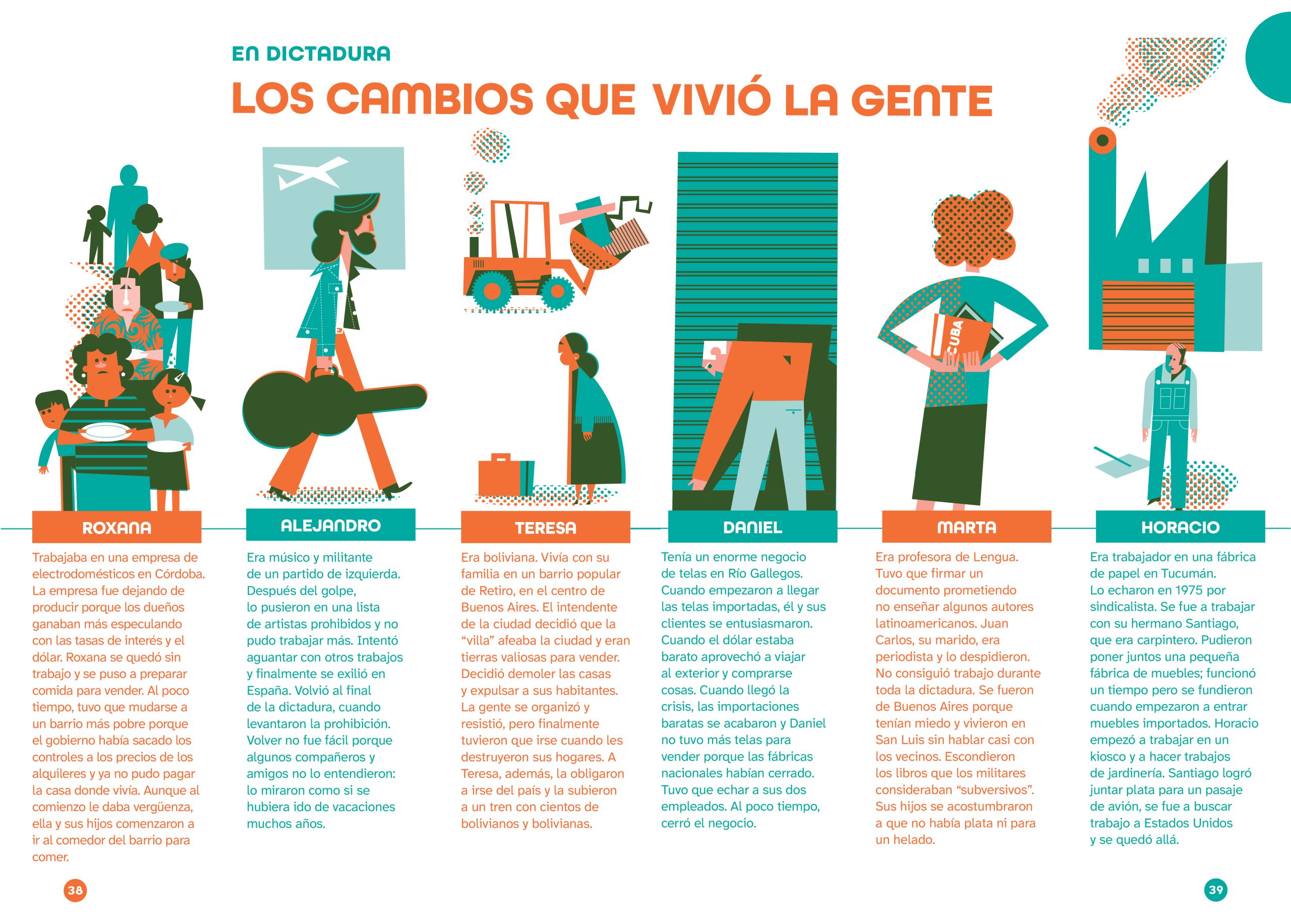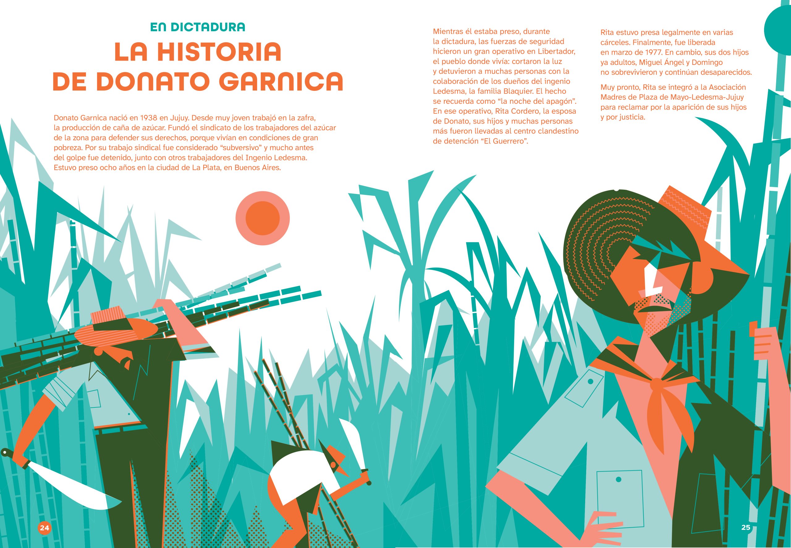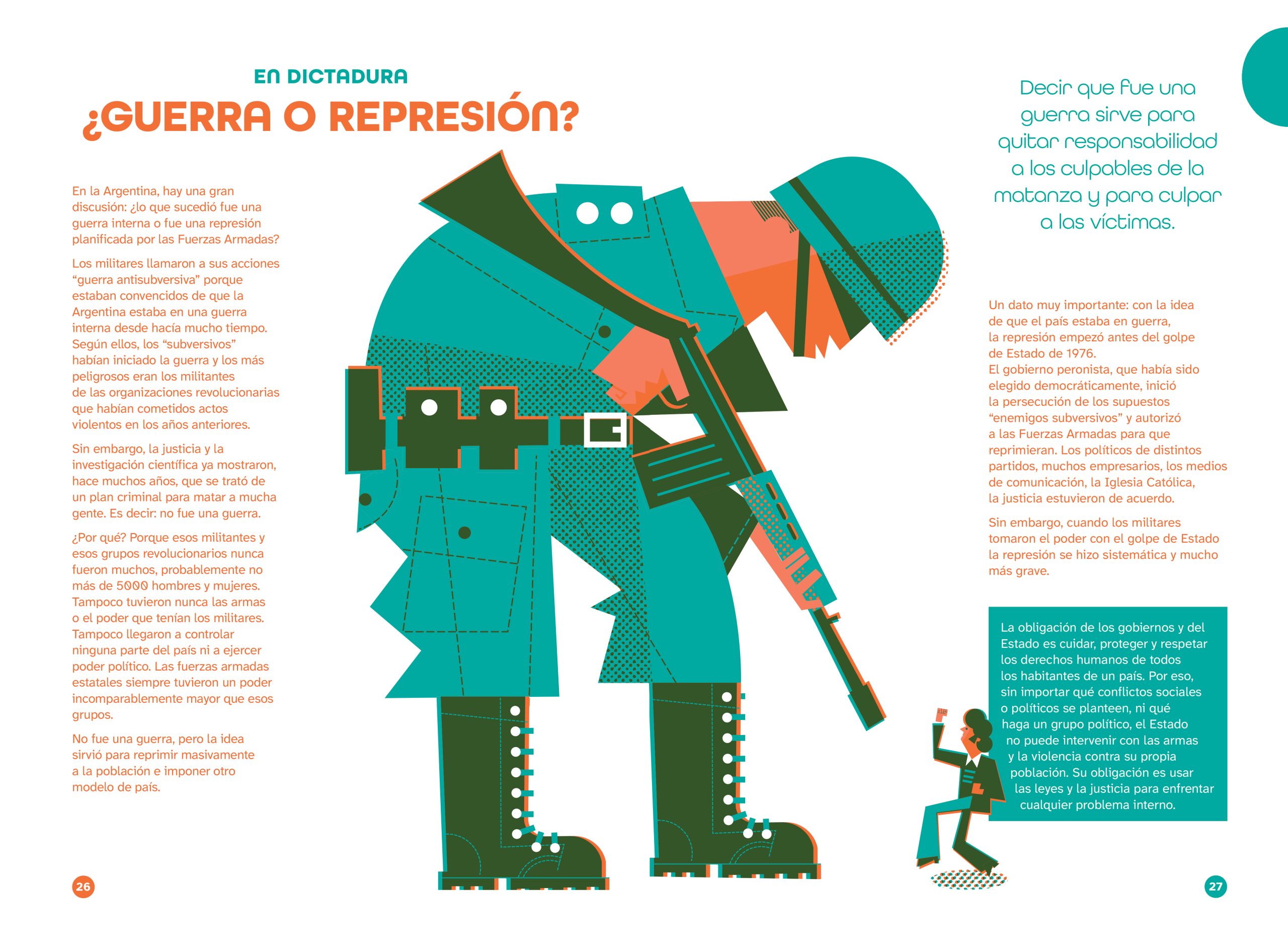 Pablo was commissioned to illustrate a picture book that revisits the events of the last military dictatorship in Argentina, which took place 50 years ago. The challenge, beyond visually representing such a sensitive and controversial subject, was to create a versatile color palette using only two Pantone inks, along with their gradients and overlays.