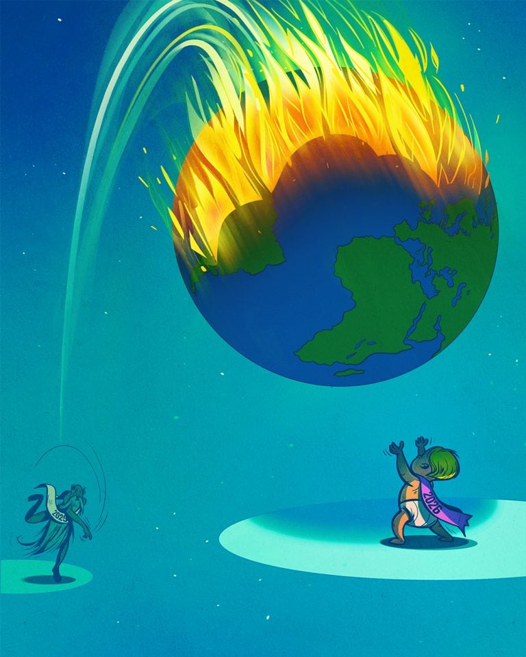 Kotynski is a Polish illustrator with a wide range of experience in the press, film, animation, computer games and advertising. He moves in the zone of conceptualism using tools such as metaphor, surrealism, hyperbole and clichés. His style consists of clean lines, flat fills, gradients and vivid colors.