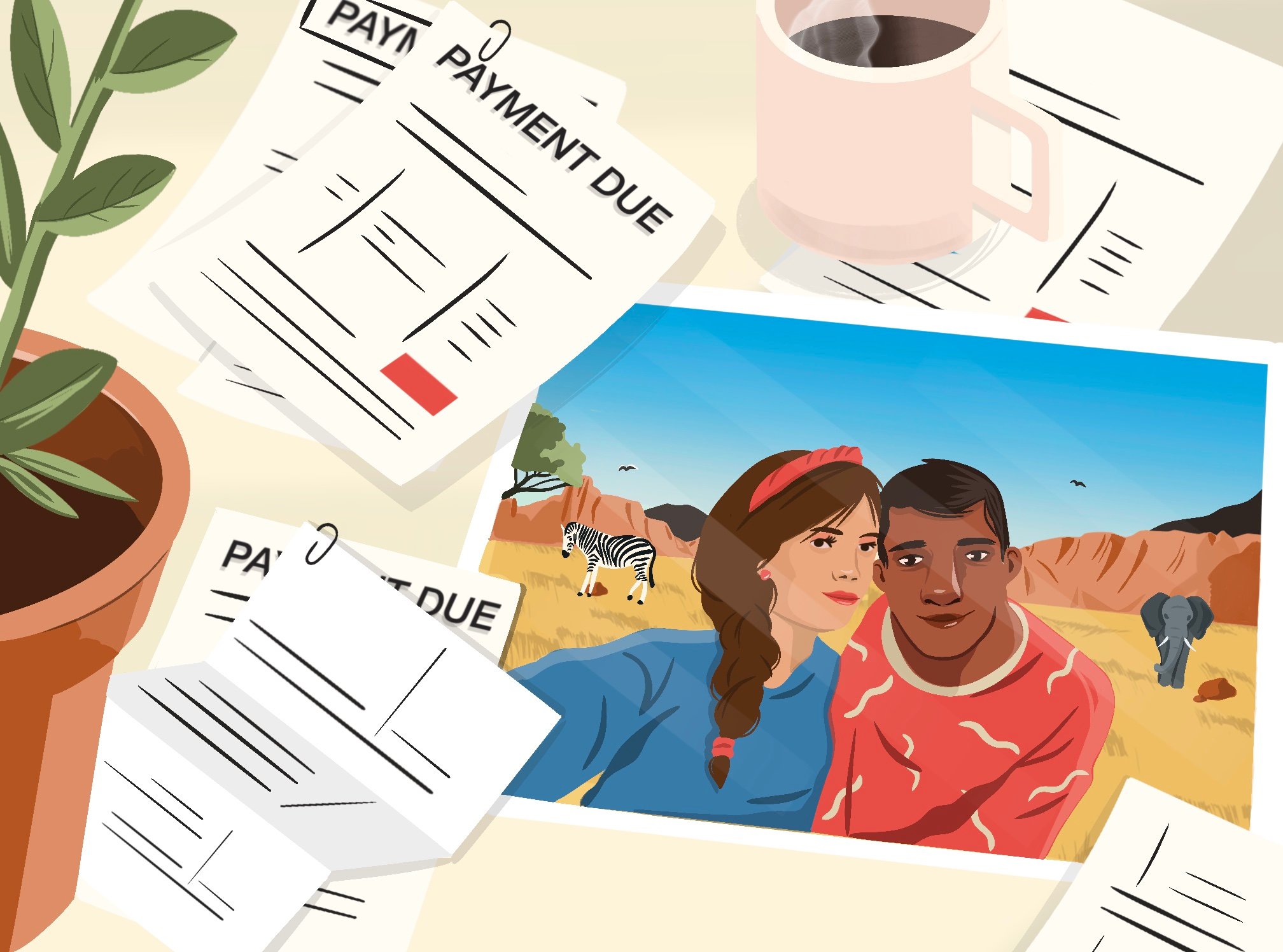 Roberto Cigna was commissioned to illustrate the Wall Street Journal article “Experts Warn Against Paying for Travel This Way. Travelers Love It.” by Jen Rose Smith. His work accompanied a feature on the rapid rise of “buy now, pay later” travel, capturing both the excitement of new destinations and the financial risks behind the trend.