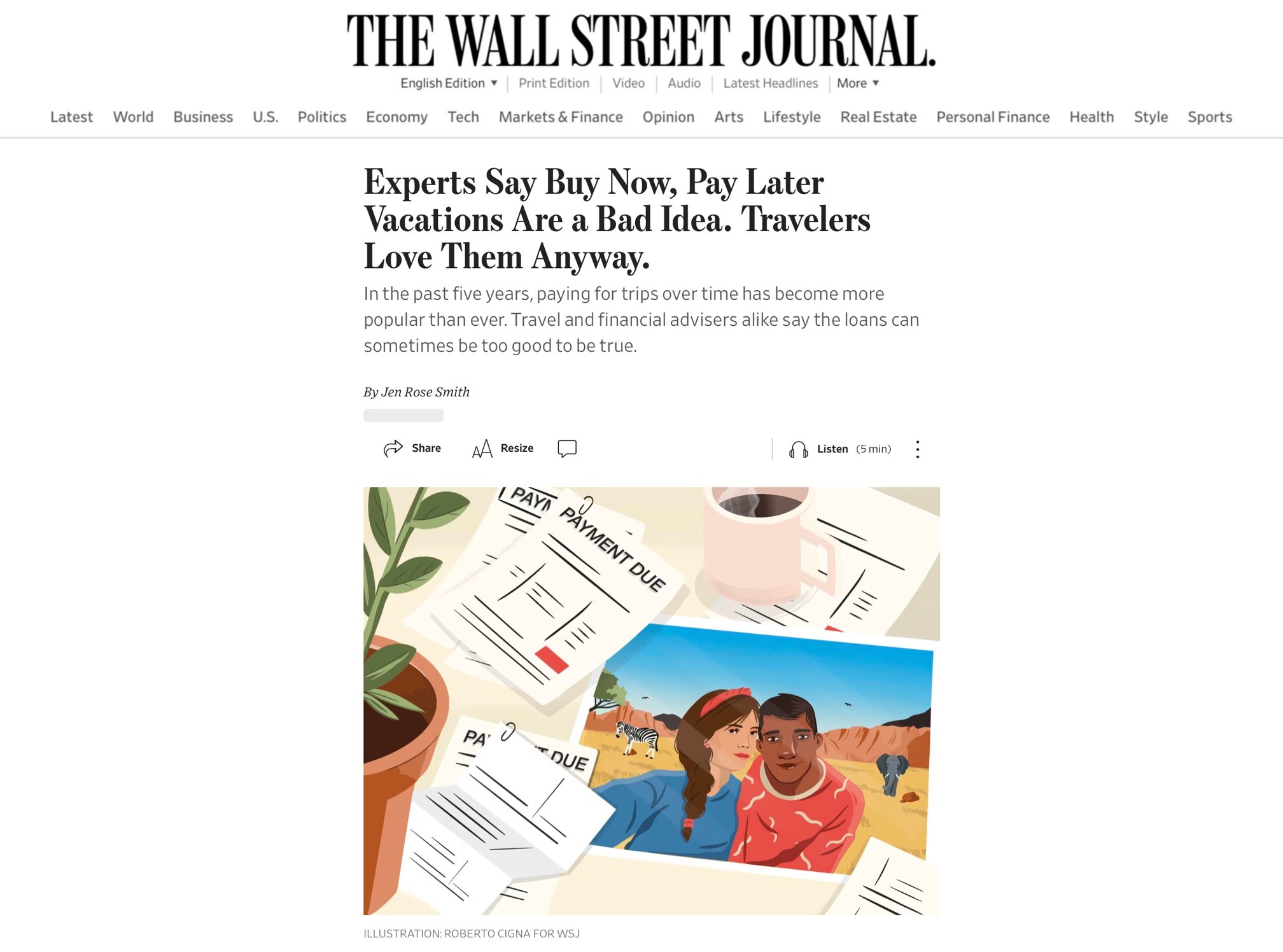 Roberto Cigna / Wall Street Journal / Experts Say Buy Now, Pay Later Vacations Are a Bad Idea. Travelers Love Them Anyway.