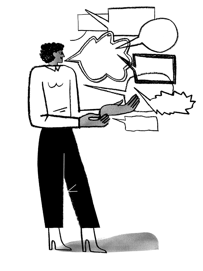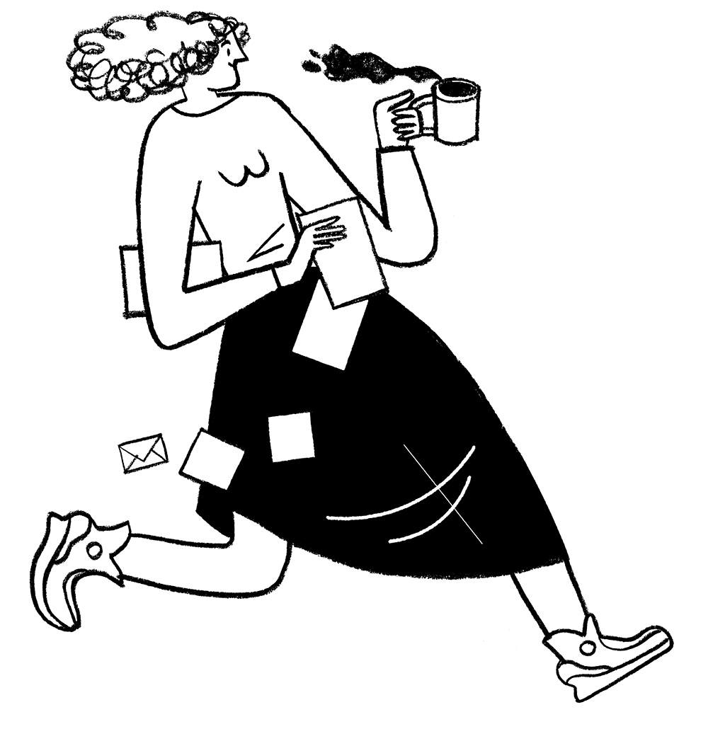 Stephanie Wunderlich was asked to draw a series of black & white illustrations for an internal campaign for JTI employees. The campaign aimed at shifting how employees think about and participate in meetings. The goal of this campaign was to empower teams to get back control of their time. The tone should feel energizing with lightness and a bit of wit.